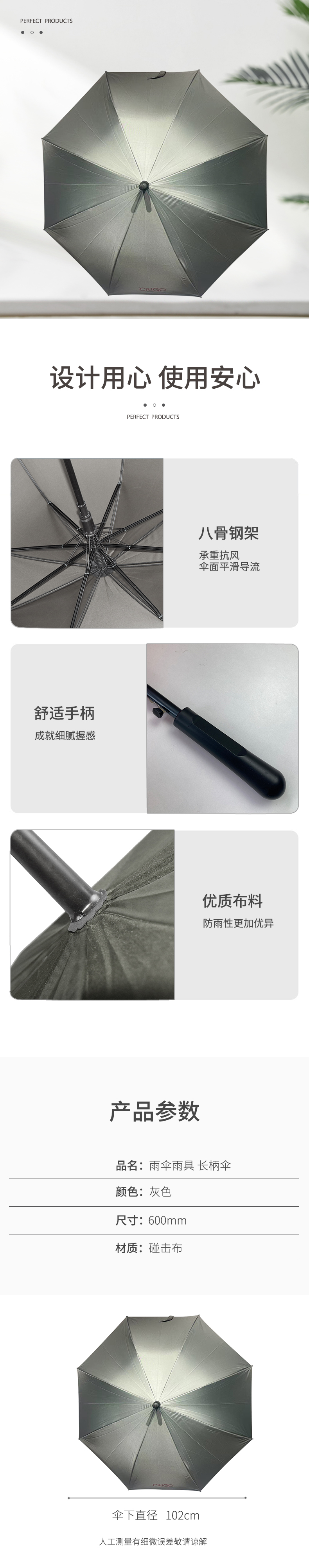 雨伞雨具 长柄伞 碰击布 灰色 600mm 独立包装 CitiGO