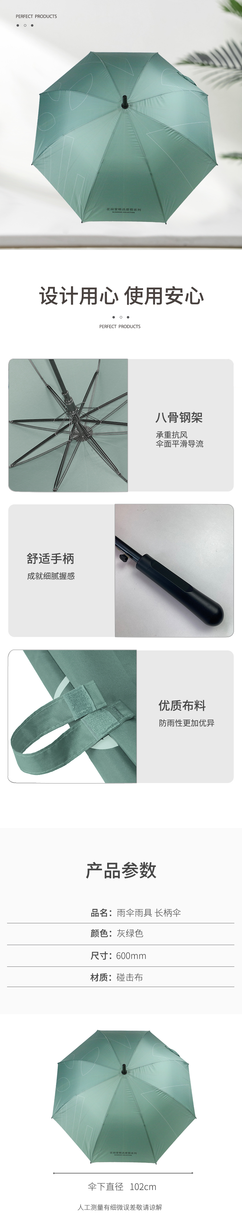 雨伞雨具 长柄伞 碰击布 灰绿色 600mm 独立包装 花间系列