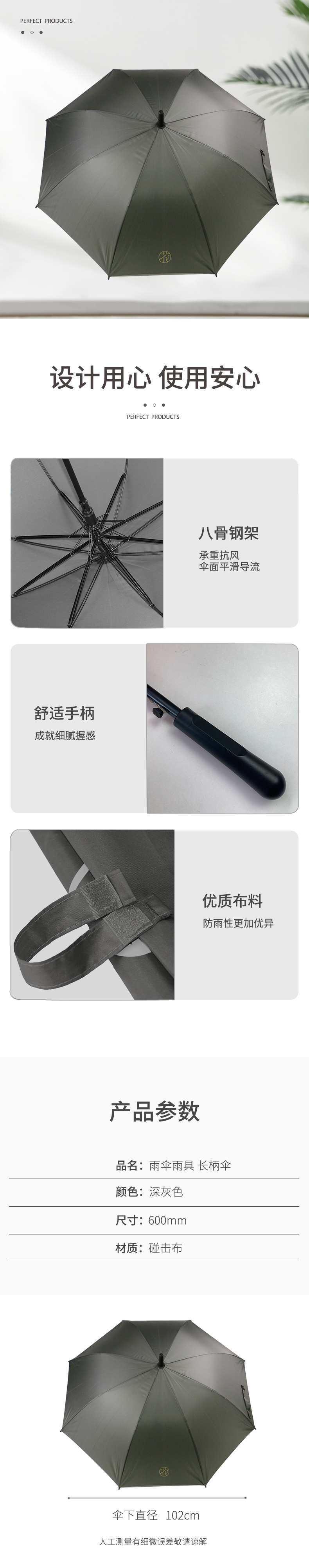 雨伞雨具 长柄伞 碰击布 深灰色 600mm 独立包装 花间堂
