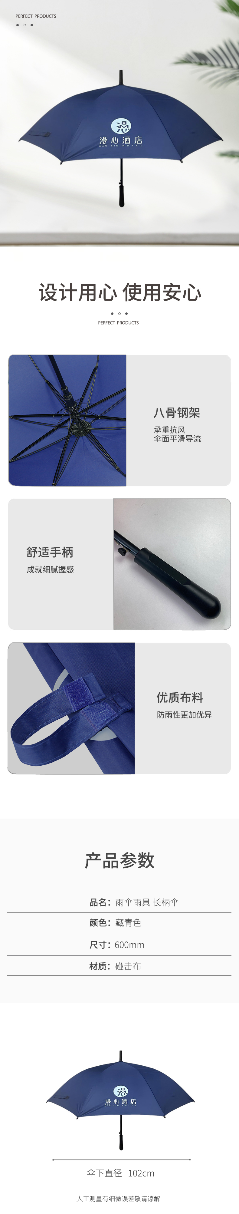 雨伞雨具 长柄伞 碰击布 藏青色 600mm 独立包装 漫心