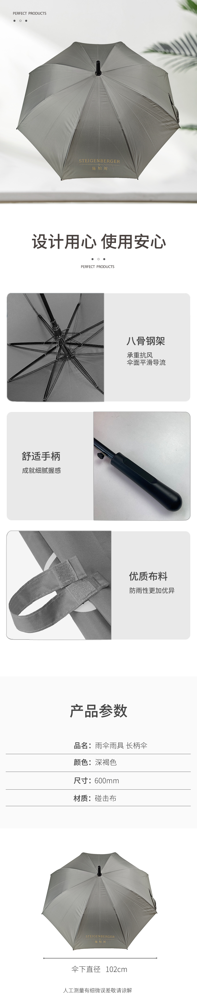 雨伞雨具 长柄伞 碰击布 深褐色 600mm 独立包装 施柏阁